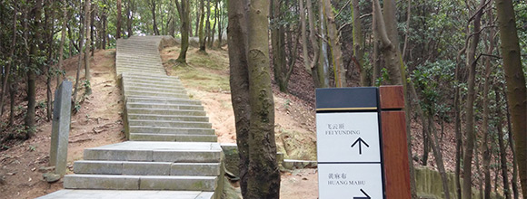 3)山顶胜景区从“云顶参天”开始分为南北两路:南路(沿大茅山方向)有猪兜石、“万福洞”、“石乳清湖”、“狮吼巨石”、“烟楼晚望”等;北路(沿白鸽山方向)有“试剑石”、“伶仃奇石”、“较剪石”等景点。